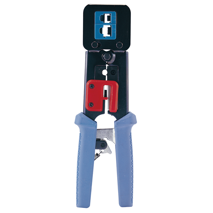 • RJ-11 (6 konum) ve RJ-45 (8 konum) modüler fişler için mandallı sıkma aleti.